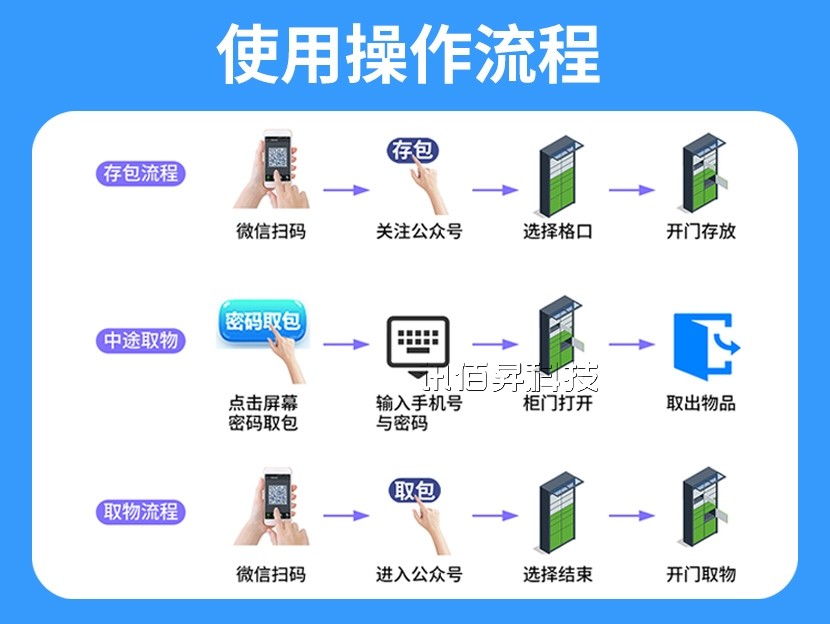 产品介绍:微信扫码智能共享储物柜一微信扫码智能储物柜介绍随着共享经济与移动支付的普及,传统储物柜因操作繁琐、支付方式单一等问题逐渐无法满足市场需求。智能储物柜通过微信扫码技术打造智能共享储物柜,实现无接触存取+移动支付+云端管理的闭环服务,解决公共场所(……