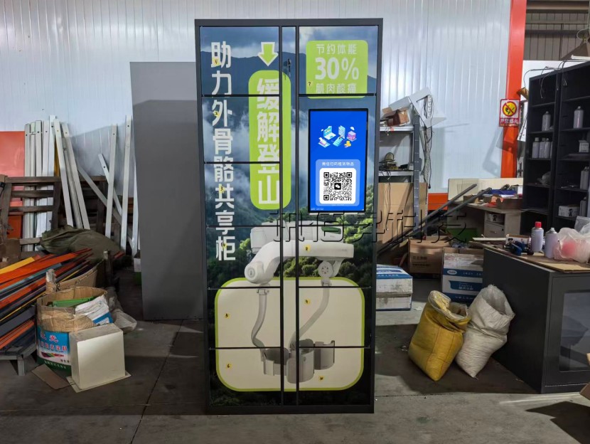 这是一款景区专用的智能共享租赁柜,用于存放、租赁登山助力外骨骼机器人,主打 “缓解登山疲劳、节约体能”,是科技赋能文旅的典型设备。