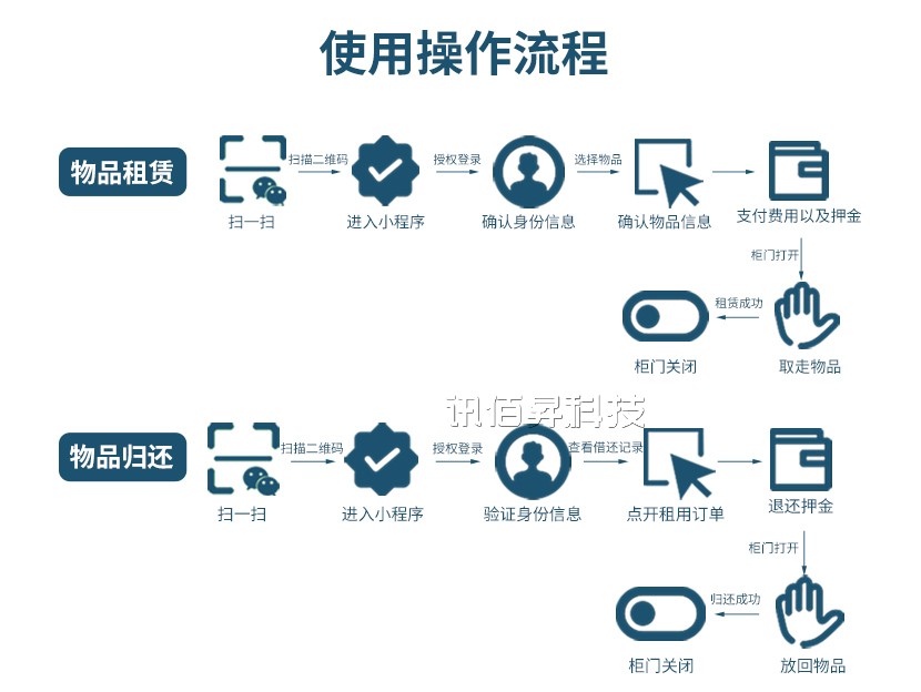 智能租赁柜支持扫码开柜、自动计费、远程监控等功能,用户无需预约或等待,全天候可租用